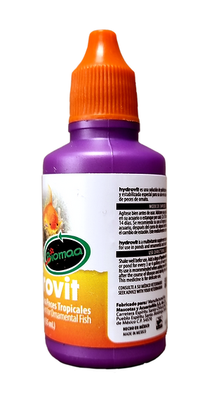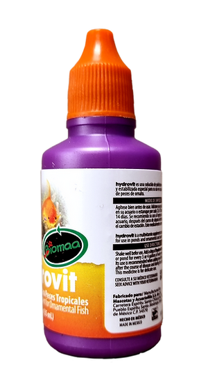 Hydrovit contiene vitaminas hidrosolubles, como las vitaminas del complejo B y las principales vitaminas liposolubles, como son la A, D y E. Está particularmente reforzado con elevada concentración de Vitamina C, la cual es esencial para los peces, ayudándoles a mantener la integridad de sus epitelios, esqueleto y reforzando el sistema inmunológico.